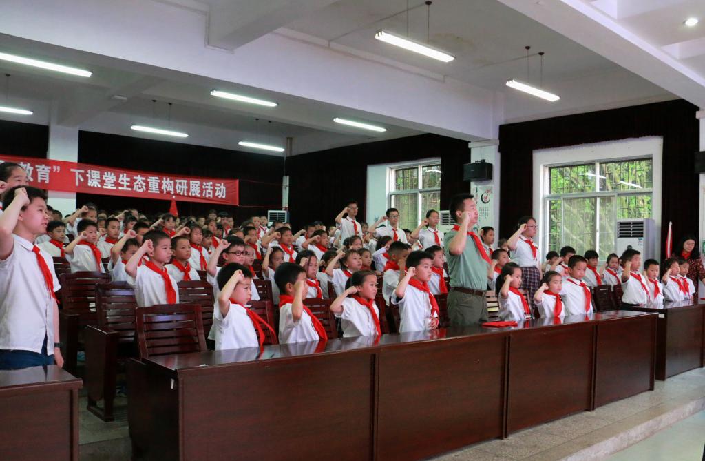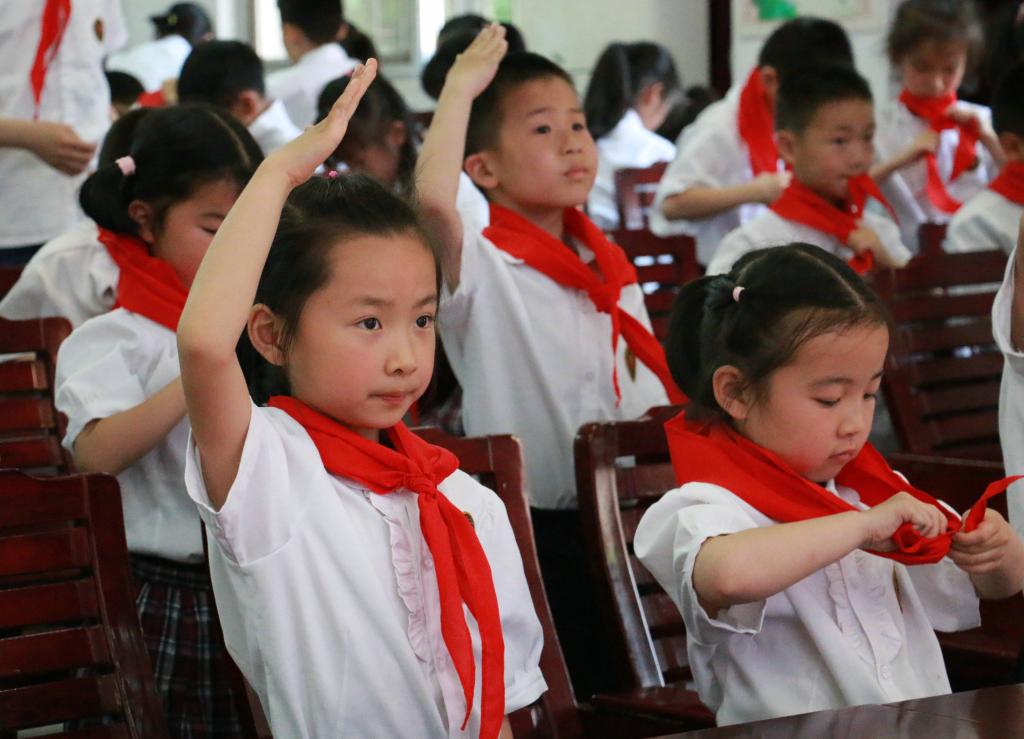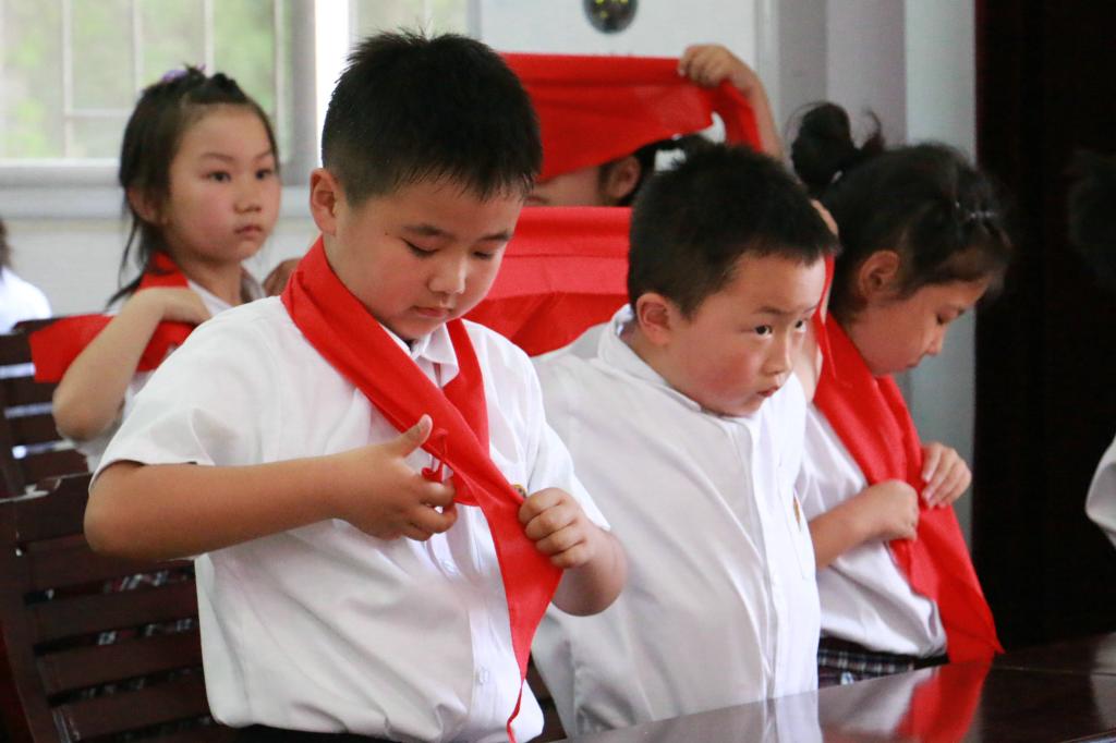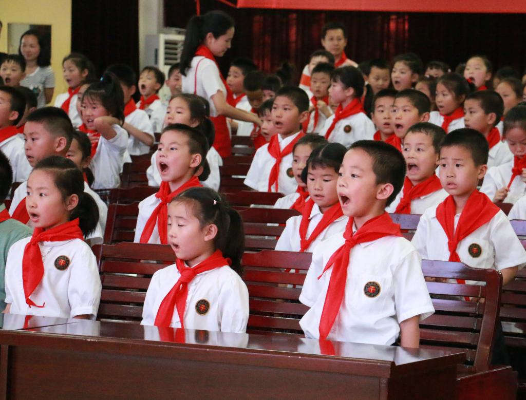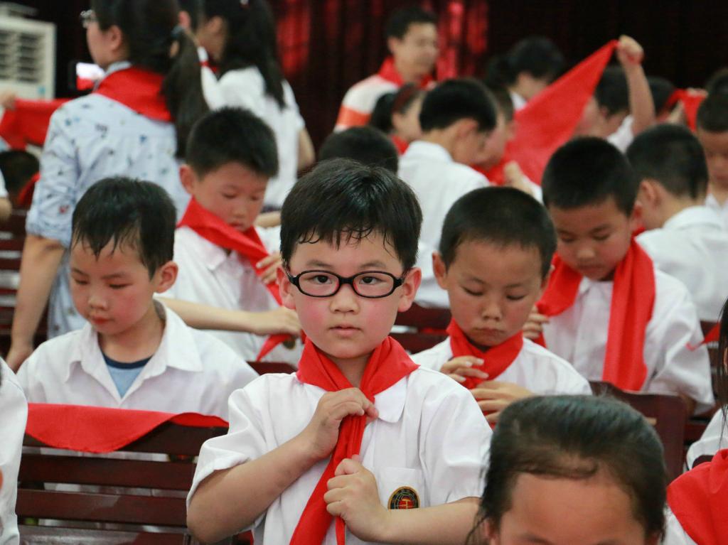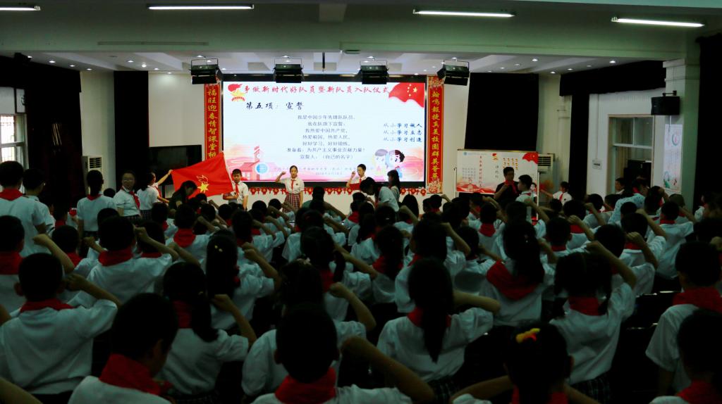 在万众期待之中,入队仪式正式拉开了帷幕。队员们个个神采奕奕,在队旗下骄傲地挺起胸:佩戴红领巾、敬礼、唱队歌、呼号、宣誓,在大队辅导员老师的带领下,少先队员们大声呼号:“时刻准备着!”表明了为共产主义事业贡献力量的决心。