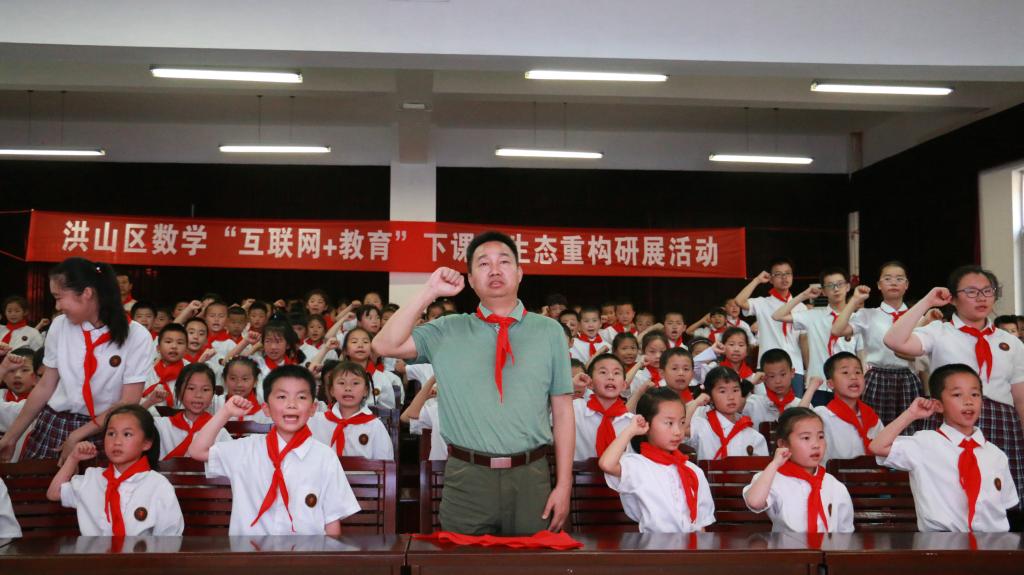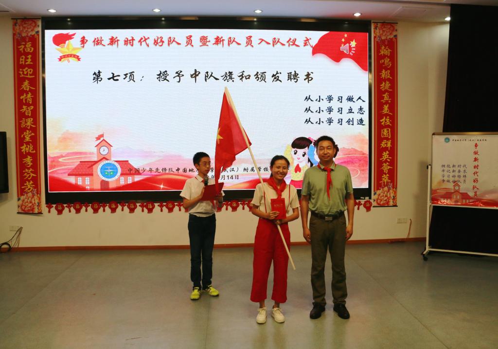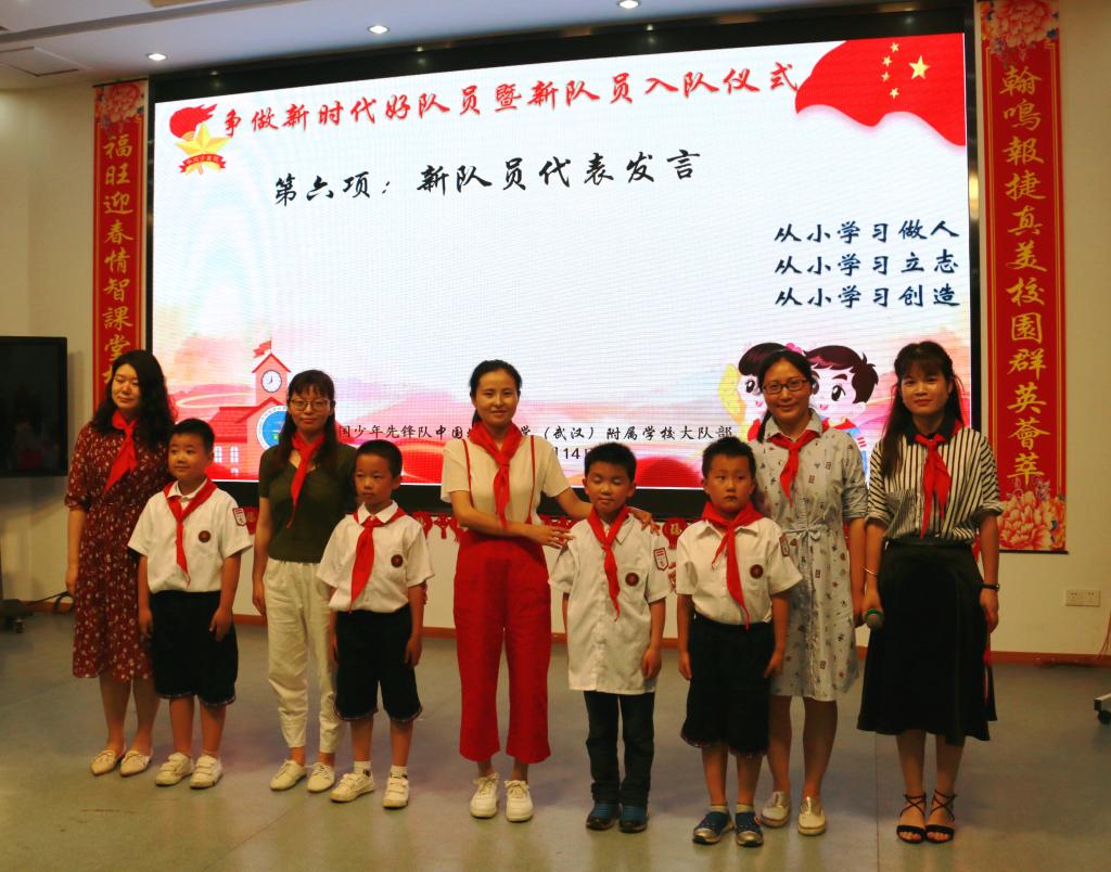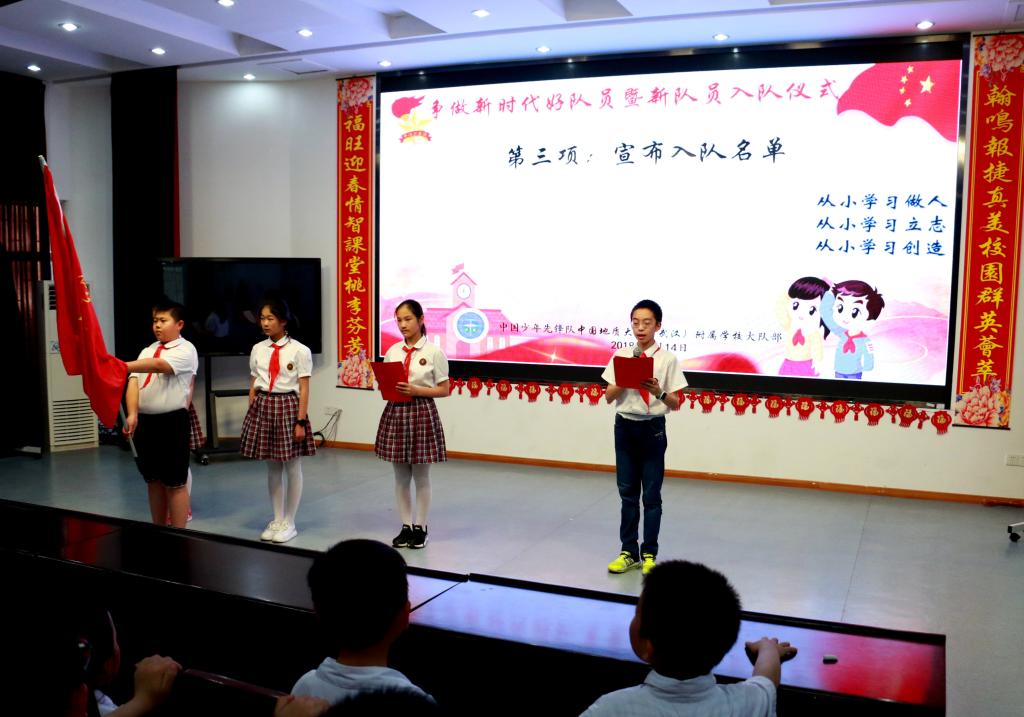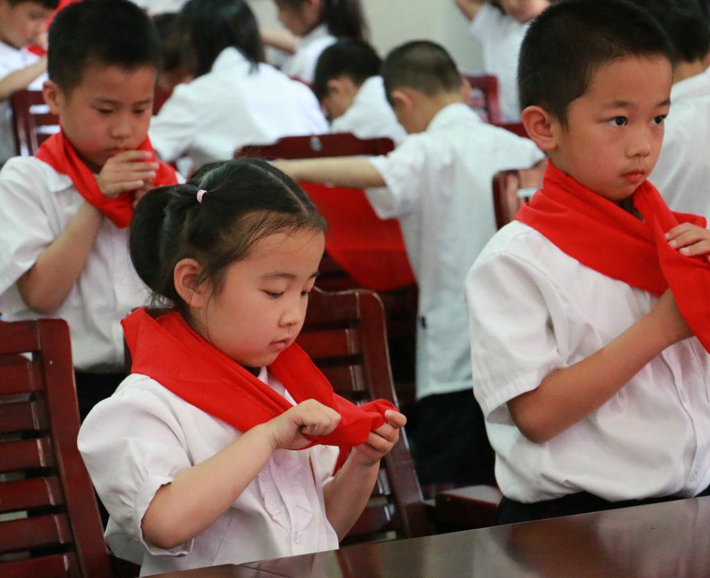 在万众期待之中,入队仪式正式拉开了帷幕。队员们个个神采奕奕,在队旗下骄傲地挺起胸:佩戴红领巾、敬礼、唱队歌、呼号、宣誓,在大队辅导员老师的带领下,少先队员们大声呼号:“时刻准备着!”表明了为共产主义事业贡献力量的决心。