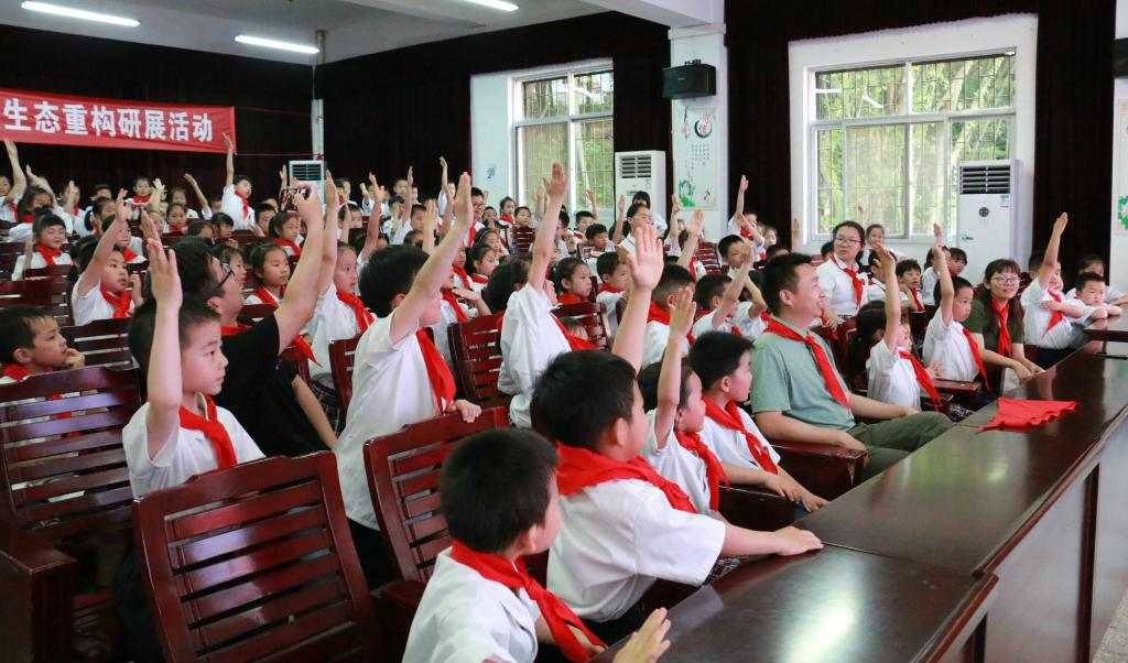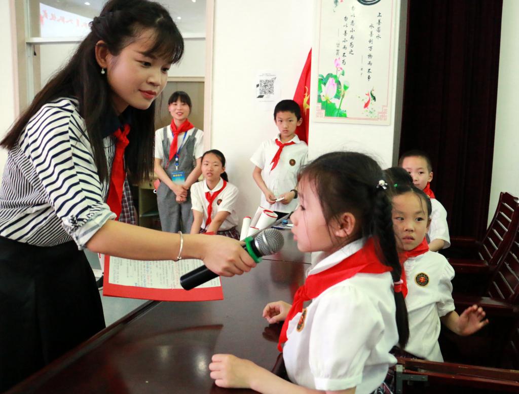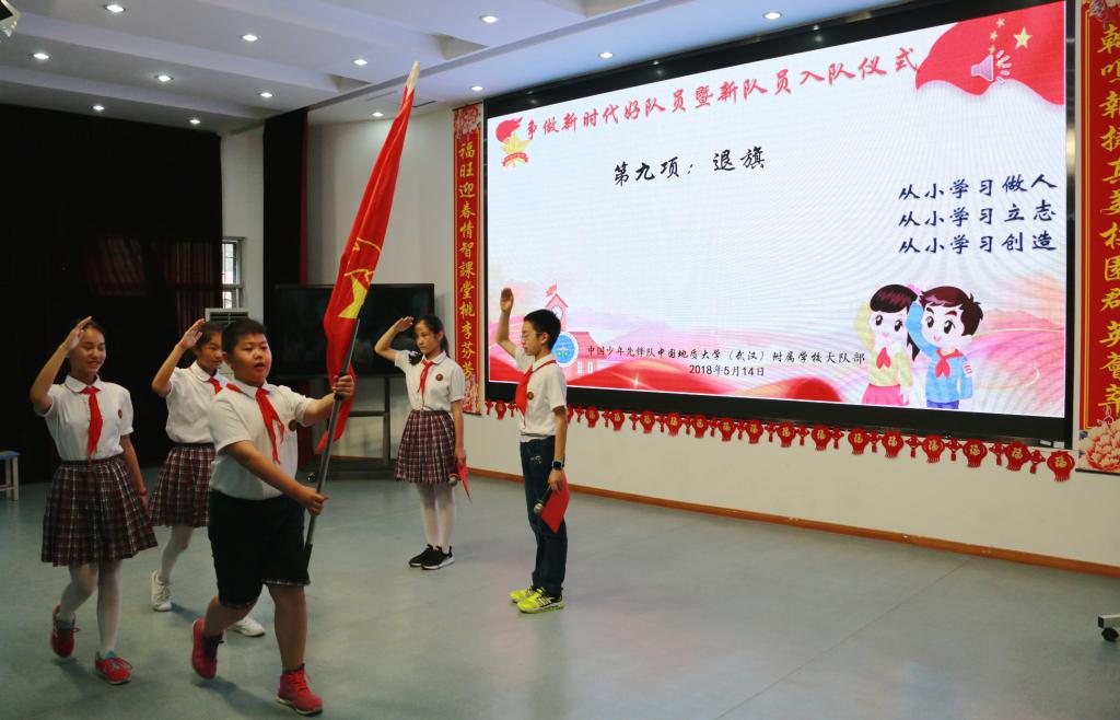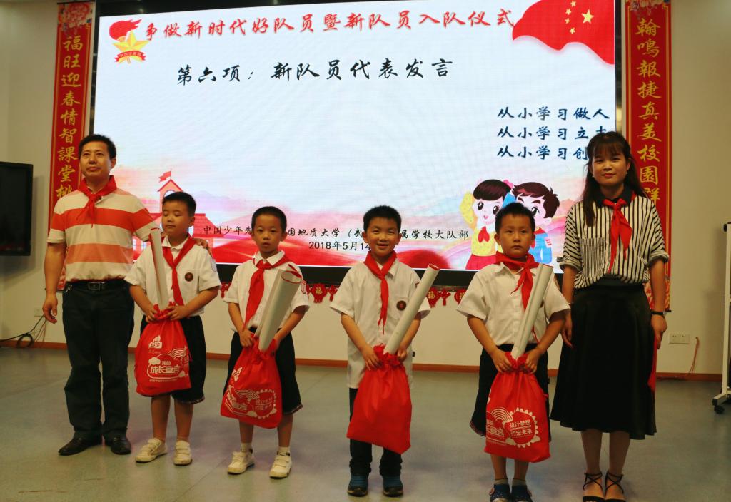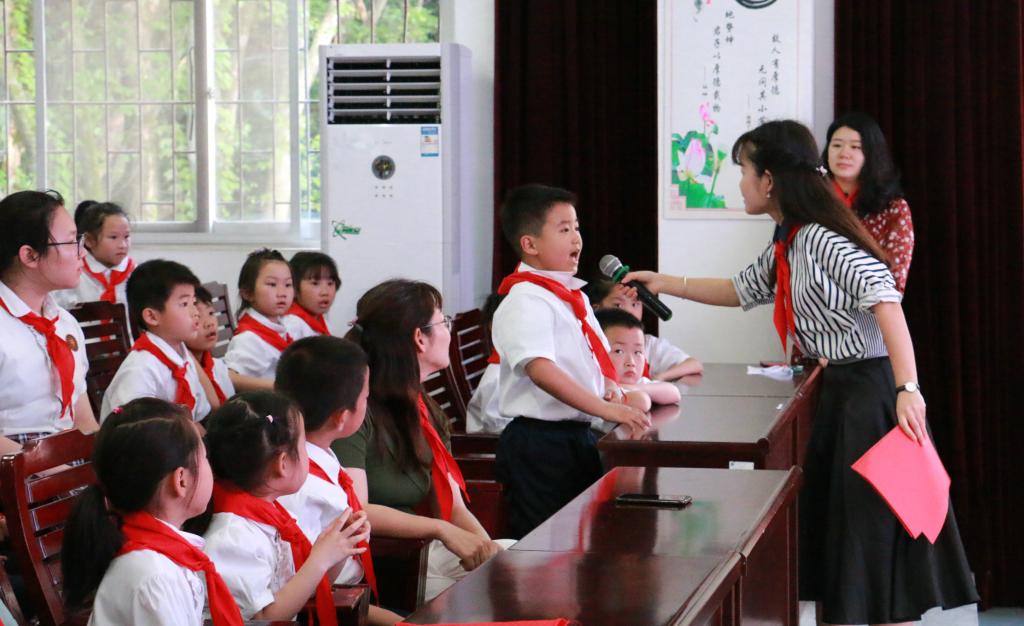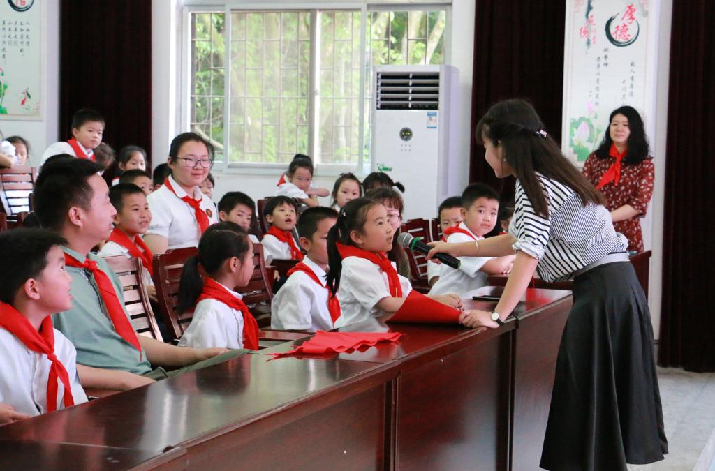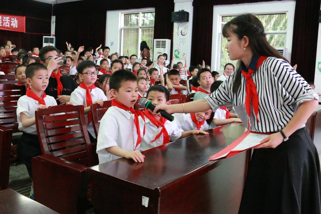 在此次活动中还进行了“观看党的十九大争做新时代好队员”的视频,大队辅导员段老师还进行了相应的提问,队员们踊跃回答问题,活动中队员们脸上专注的神情、洋溢着的灿烂微笑无不彰显着他们对于活动的全情投入,也体现出他们对未来的期待,这次入队活动的意义不言而喻。