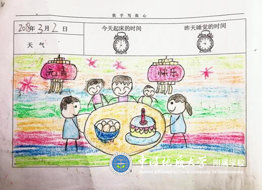 正月十五,大街(jiē)上都挂(ɡuà)上了红红的灯笼,家家户户都要吃汤(tānɡ)圆(yuán)。今天不仅是元宵(xiāo)节,还是堂(tánɡ)弟(dì)两岁生日。你们猜猜我弟弟叫什么名字?他的名字叫小汤(tānɡ)圆(yuán)。我们一家人都围(wéi)坐在桌(zhuō)前,一边吃着汤(tānɡ)圆(yuán),一边吃着生日蛋(dàn)糕(ɡāo),元宵(xiāo)节真开心!