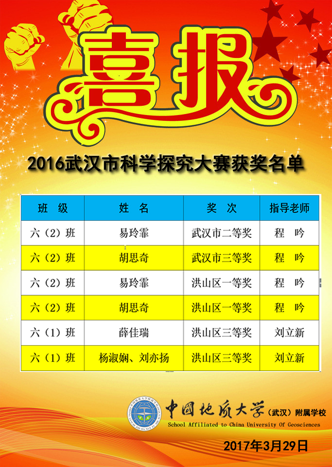 地址:湖北省武汉市洪山区鲁磨路388号 邮编:430074版权所有: 中国地质大学(武汉)附属学校