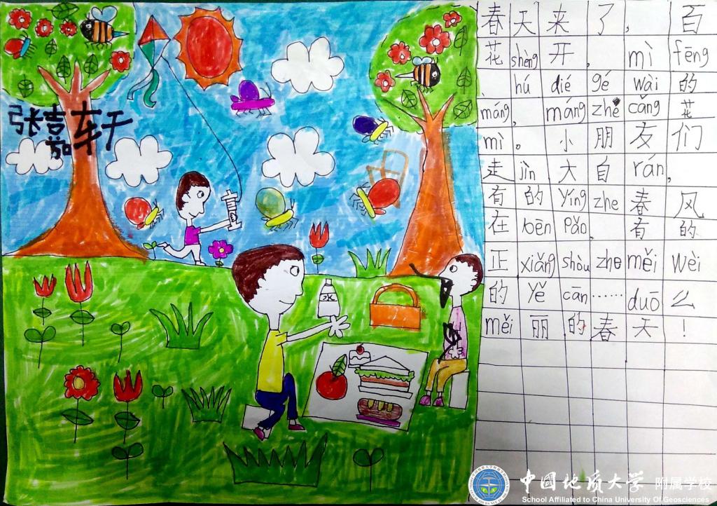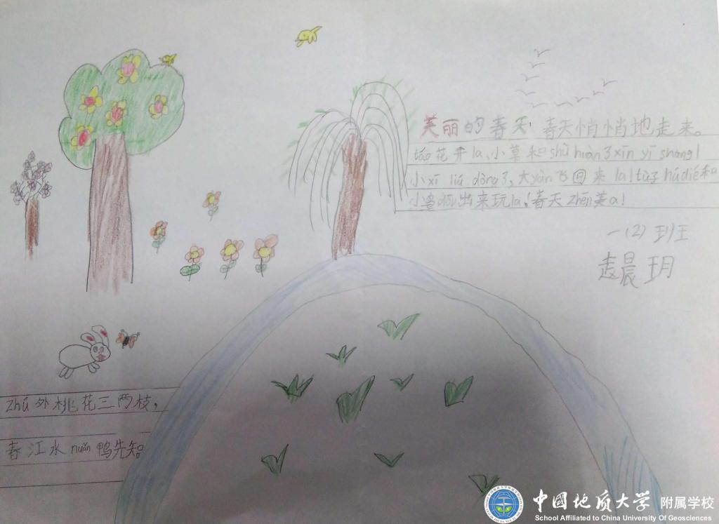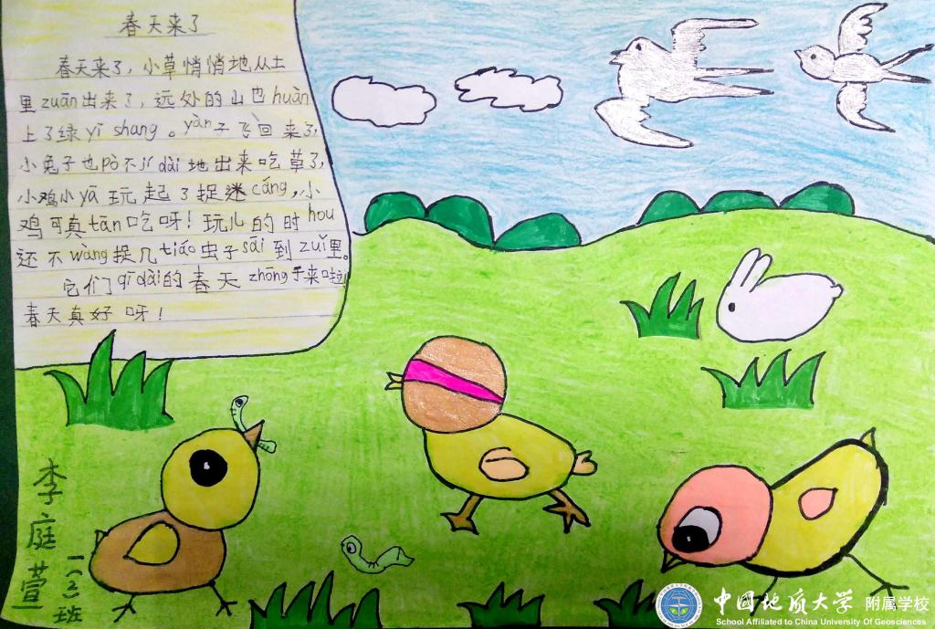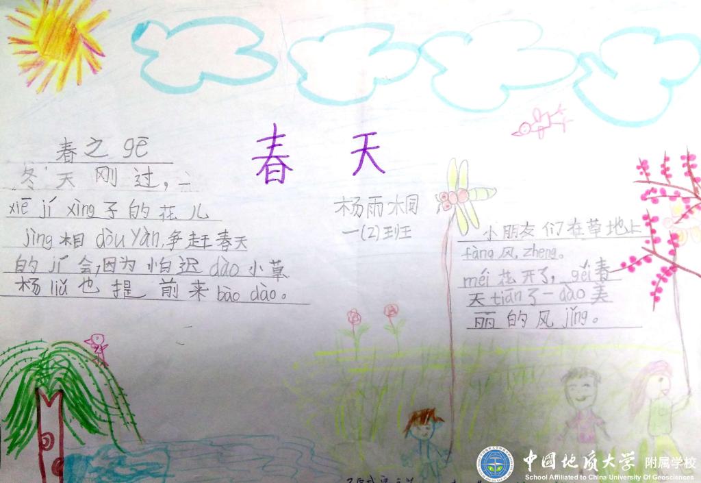 暖暖的春风伴着泥土的芳香唤醒了沉睡的大地,吹跑了小朋友们的大棉袄,吹高了风筝。嫩嫩的小草从大地妈妈的怀抱里探出头来,一朵朵可爱的小花张开笑脸在迎接小燕子的归来,小动物们都出来活动了,大地一片生机勃勃的景象。瞧!一(2)班的孩子们在美丽的大自然里找春天!