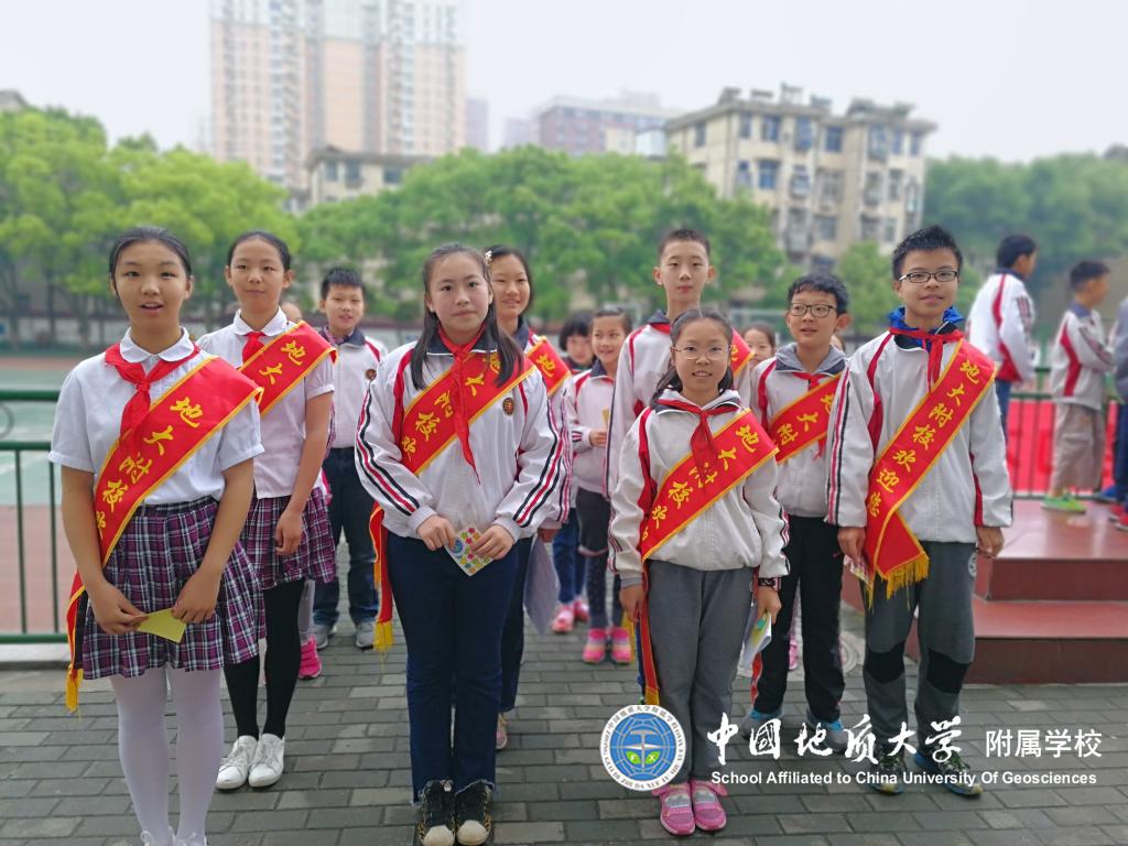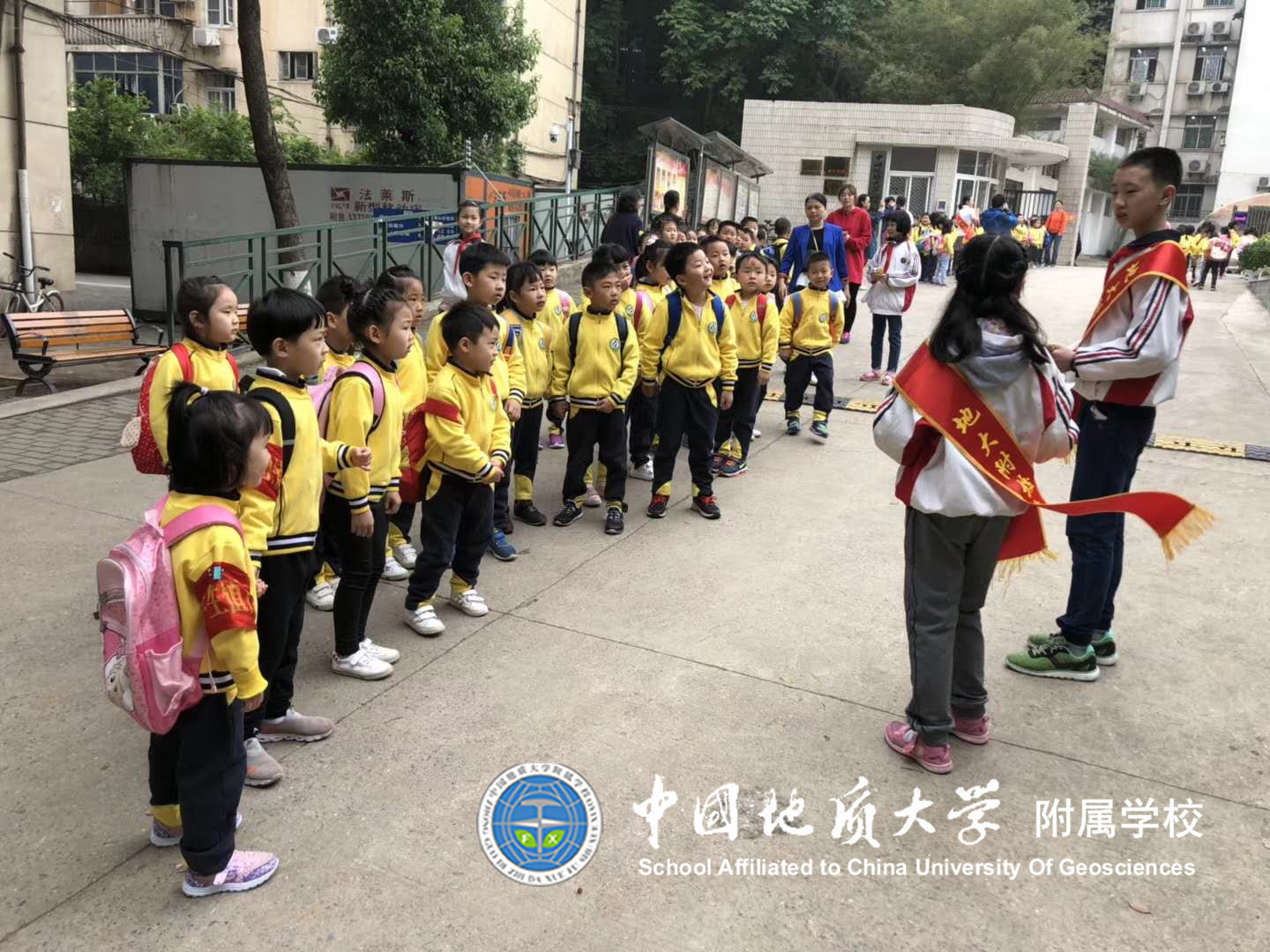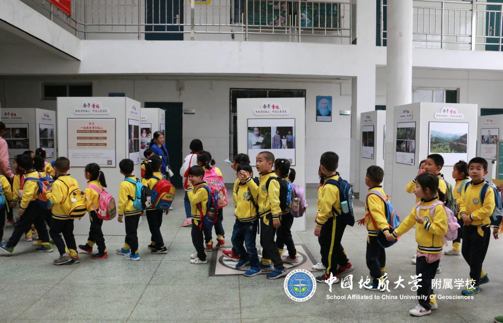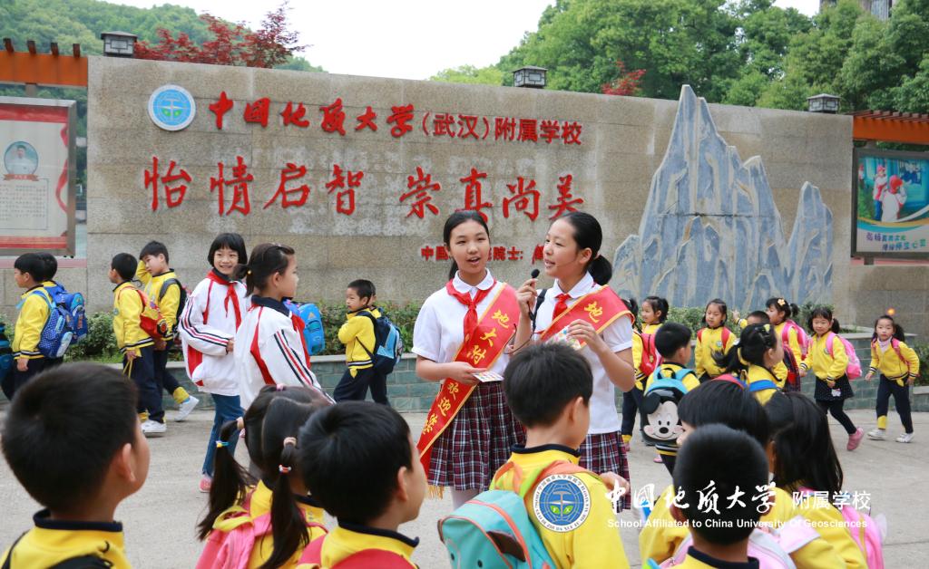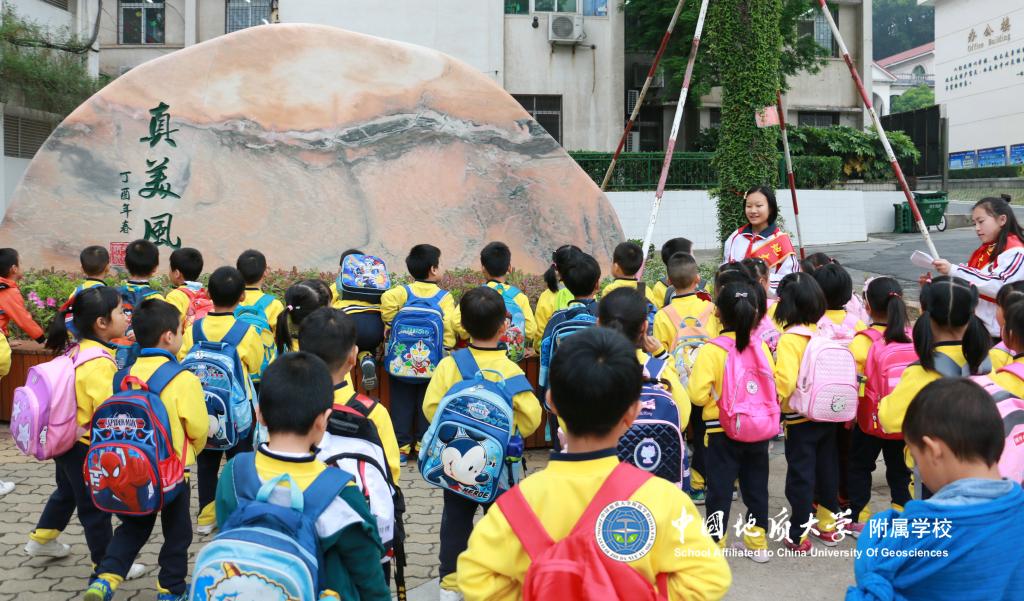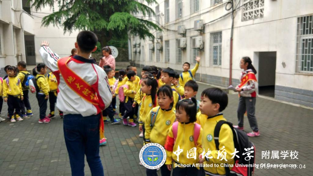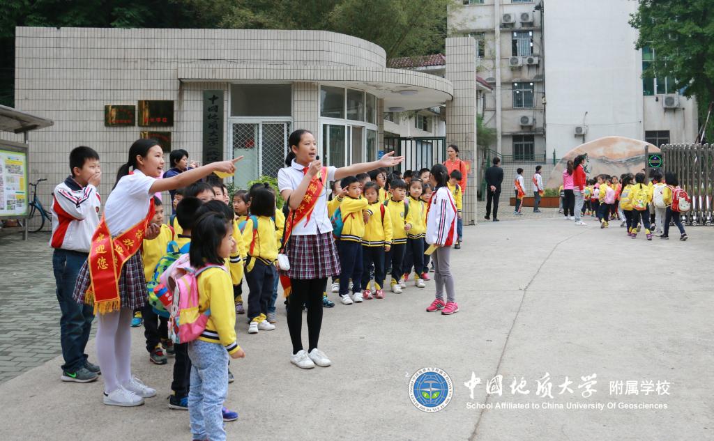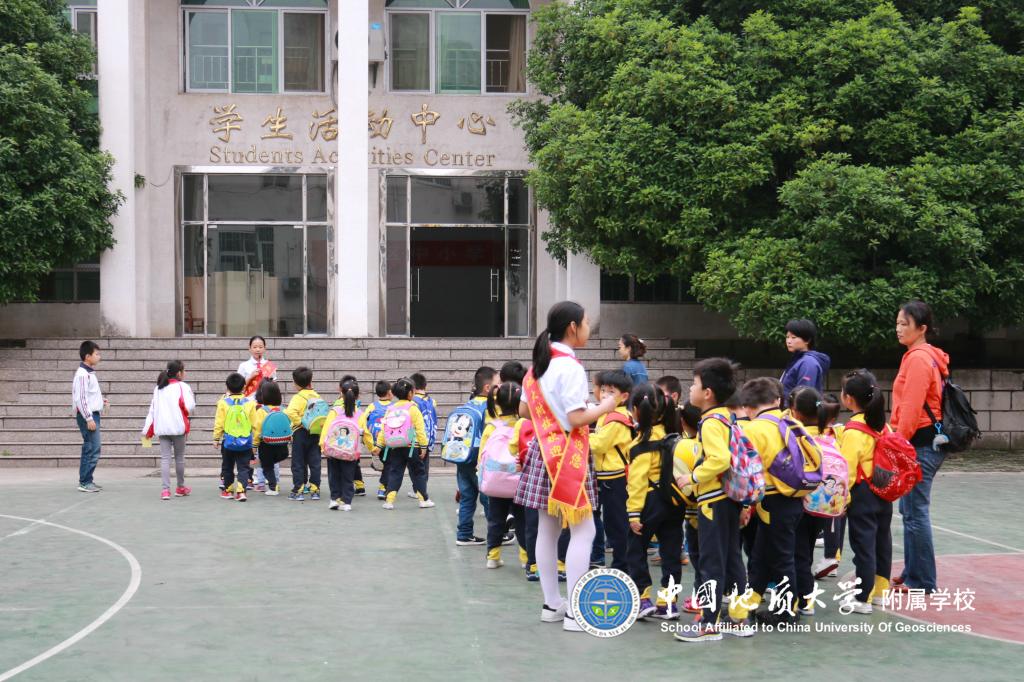 小学部小导游带着小朋友们参观校园。
