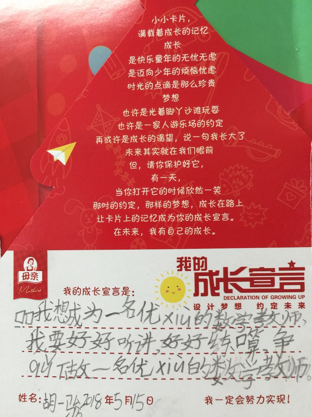 回班后中队辅导员带领少先队员们在成长宣言卡上写下了自己的梦想与对未来的期待,让每位队员心中种下一颗新的种子。