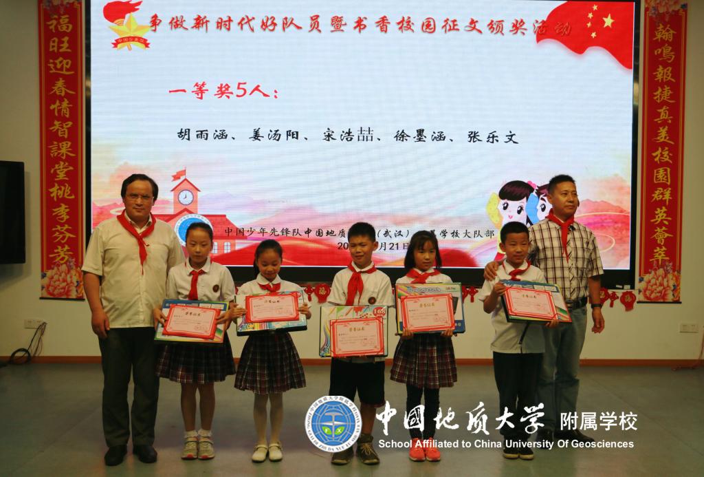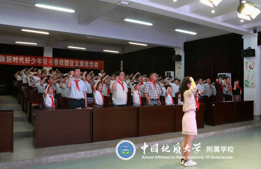 此次颁奖活动出席的领导有地大图书馆的徐世球馆长、朱蕾主任、汤苏林老师、杨美兰老师以及我校的黎义波校长、罗红兵副校长和冯涛主任,活动由我校大队辅导员段亚清老师主持。