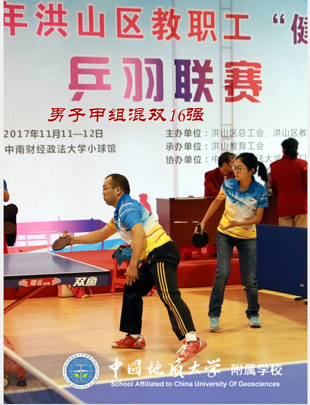 2017年11月11、12日,在中南财经政法大学体育馆,进行了由洪山区总工会、洪山区教育局主办的2017年洪山区教职工“健康杯”乒羽联赛。地大附属学校提前备战,精心组织21名教职工参加了比赛,通过顽强拼搏,荣获团体总分第六名佳绩,展示了地大附属学校教职工风采。