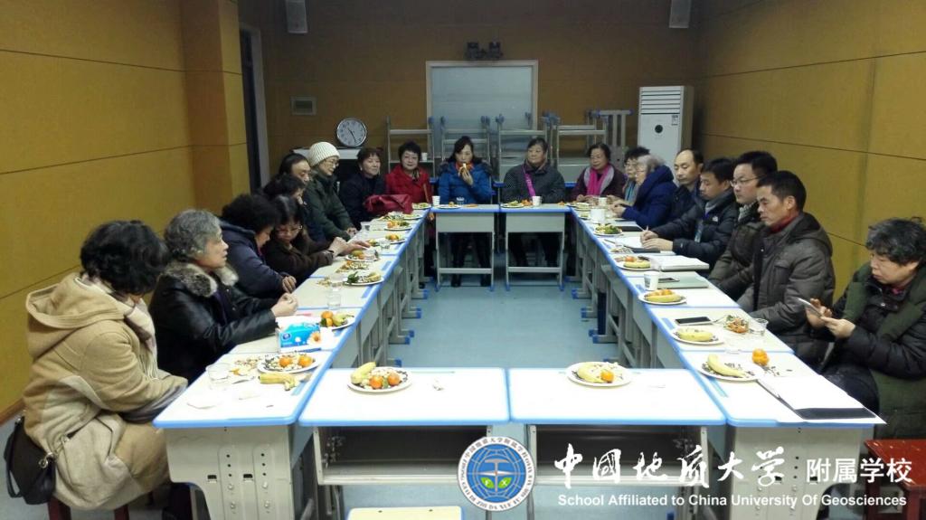 最后陈主席总结发言。她说附属学校退休教师的队伍越来越强大了,这是一支依然充满活力的夕阳红团队。这支团队的成员们曾经坚守在各自的岗位上,有的是:校长、书记、各科老师……为学校的发展建设作出贡献,他们奠定了坚实的基础。学校今天的成绩,离不开每位老师辛苦付出,在座的老师退休后不忘初心,不忘自己是地大附校人,退休后发挥余热,献言献策,为附校再展宏图提出了许多的宝贵的意见,营造了良好的办学氛围。我们将传承附校薪火,不辜负大家的殷切期望,为把附校办成大学、家长、学生、老师、社会满意的学校不懈努力!今天是“腊八节”俗称“腊八”,是汉族人传统节日,是祈求丰收和吉祥的节日。我们回家都吃吃腊八粥,图个好彩头,在这里祝愿我们的学校红红火火,越办越好,祝福老师们身体健康,退休生活更加多姿多彩!提前给老师们拜个早年:吉祥如意,阖家欢乐!最后希望大家今后一如既往,发挥余热,继续为附校发展献计献策。