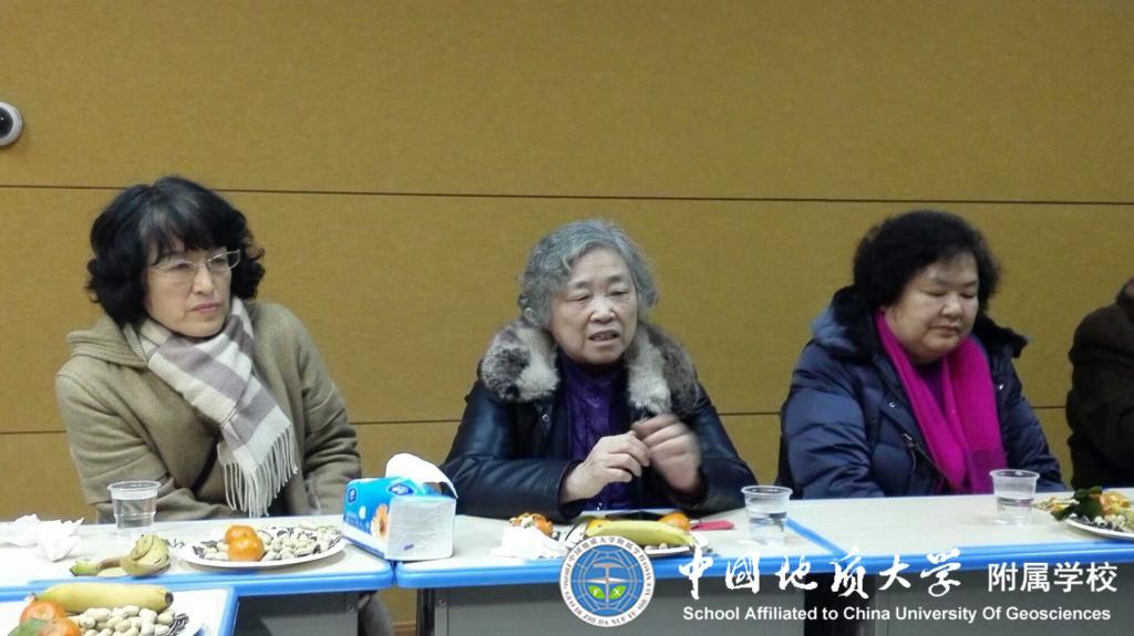 首先陈主席代表附属学校全体教职员工致欢迎词:热烈欢迎到场的退休教师,并送上美好的祝福。彭冠军书记代表附校领导汇报了2017年附属学校的工作情况以及取得的成绩。紧接着播放特色课堂视频资料,让到会的老师全方位立体了解、并感受第二课堂。随后退休教师积极发言,充分肯定了附属学校前期工作以及取得的成绩。78岁的孙慧嫣老师有感而发:附校办得好,也是退休教师的荣耀,身为附校人出门在外腰板都挺直了,说话也更硬气了……胡珊老师说:感谢附属学校每年都想着退休的老同志,让退休老师倍感温暖,学校没有忘记大家……孙菊花老师说:2018年9月外孙就要读一年级了,很高兴外孙到时能就读这么优秀的学校……附校老校长曹清姝的孙女黄灿就读附属学校九年级,成绩一直保持在区排名20以内,她说通过对孩子学习跟进了解到,学校严格管理,严抓教学……对孩子们一刻也没有放松,附属学校之所以能在洪山区取得好的排名,与“严”字分不开,不过也中肯地提出了一些建议……老师们的真情发言感动了在座的每一位到会人员。